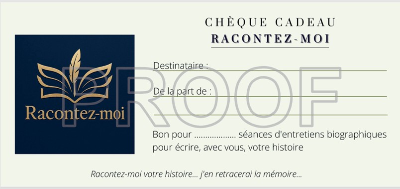 Vous souhaitez en savoir davantage sur la vie d’un de vos grands-parents, d’un de vos parents, d’un ami qui a une histoire singulière, ce chèque cadeau vous permet de lui offrir et ainsi de pouvoir me raconter ce que cette personne souhaite, et j’écrirai, avec elle, son récit.